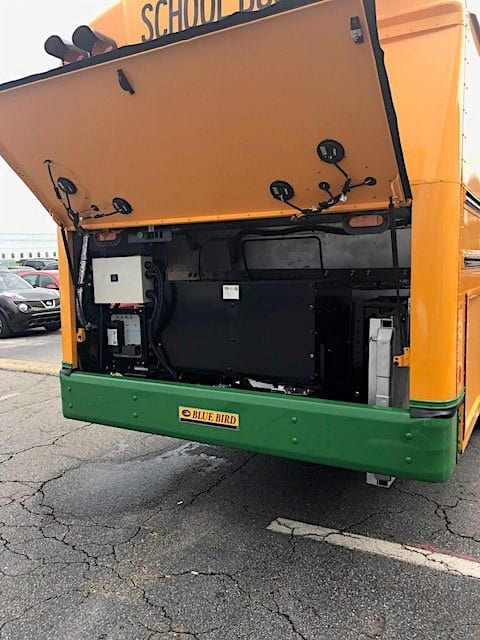 The Vision and All American electric models feature battery capacities of 100-150 kWh with an expected 80-100 miles range from a single charge, depending on driving habits. Vehicle-to-Grid (V2G) technology is also under development for this bus, which allows the bus to deliver electricity back into the grid, allowing contractors and school districts to “sell back” energy to power companies.