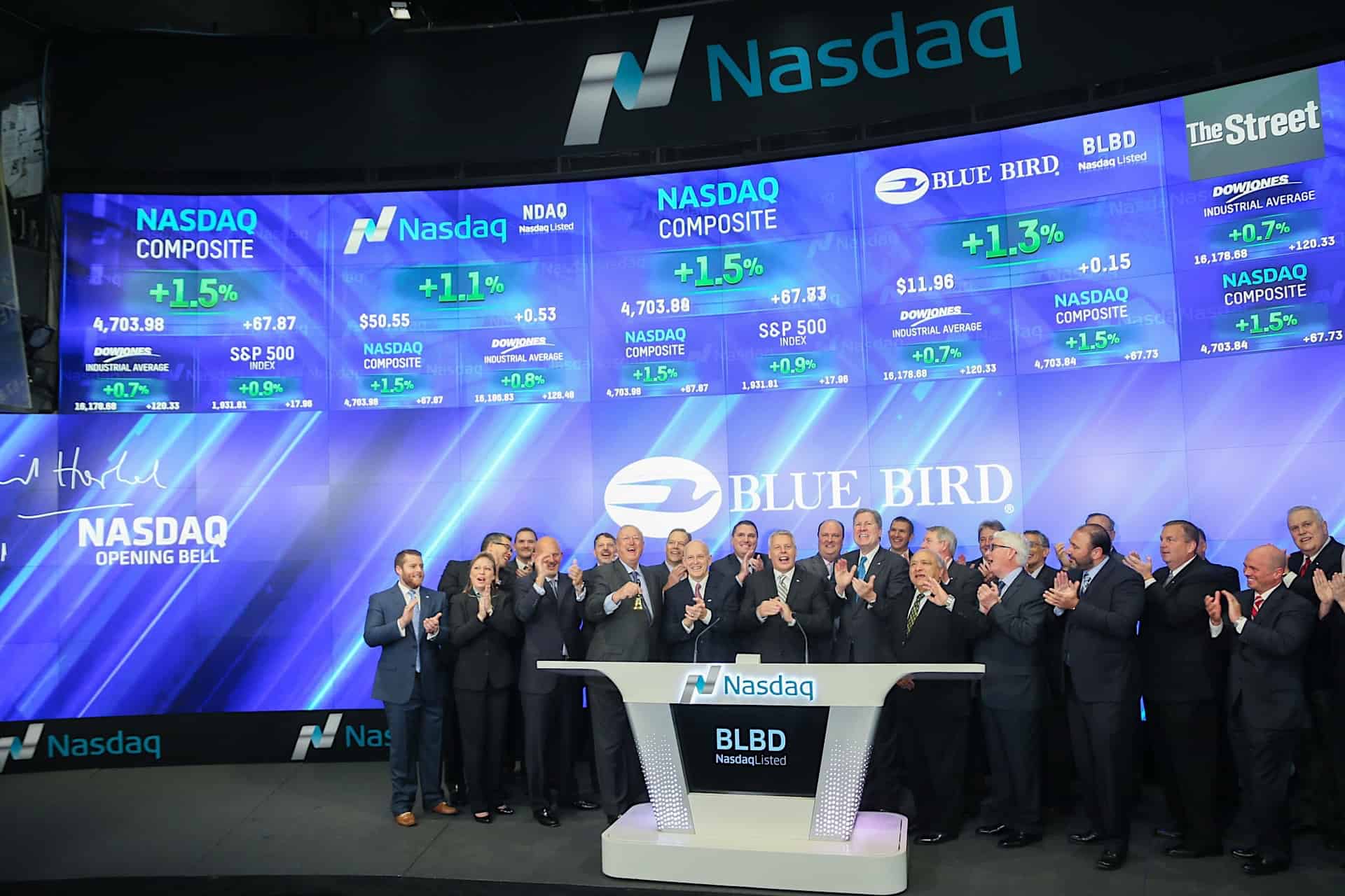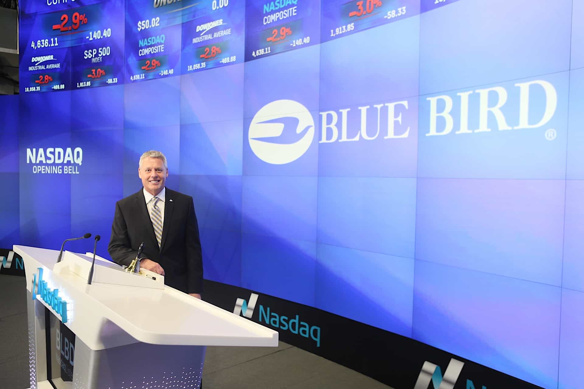 Watch @BlueBirdBuses ring the @Nasdaq Opening Bell in our brand new studio! $BLBD