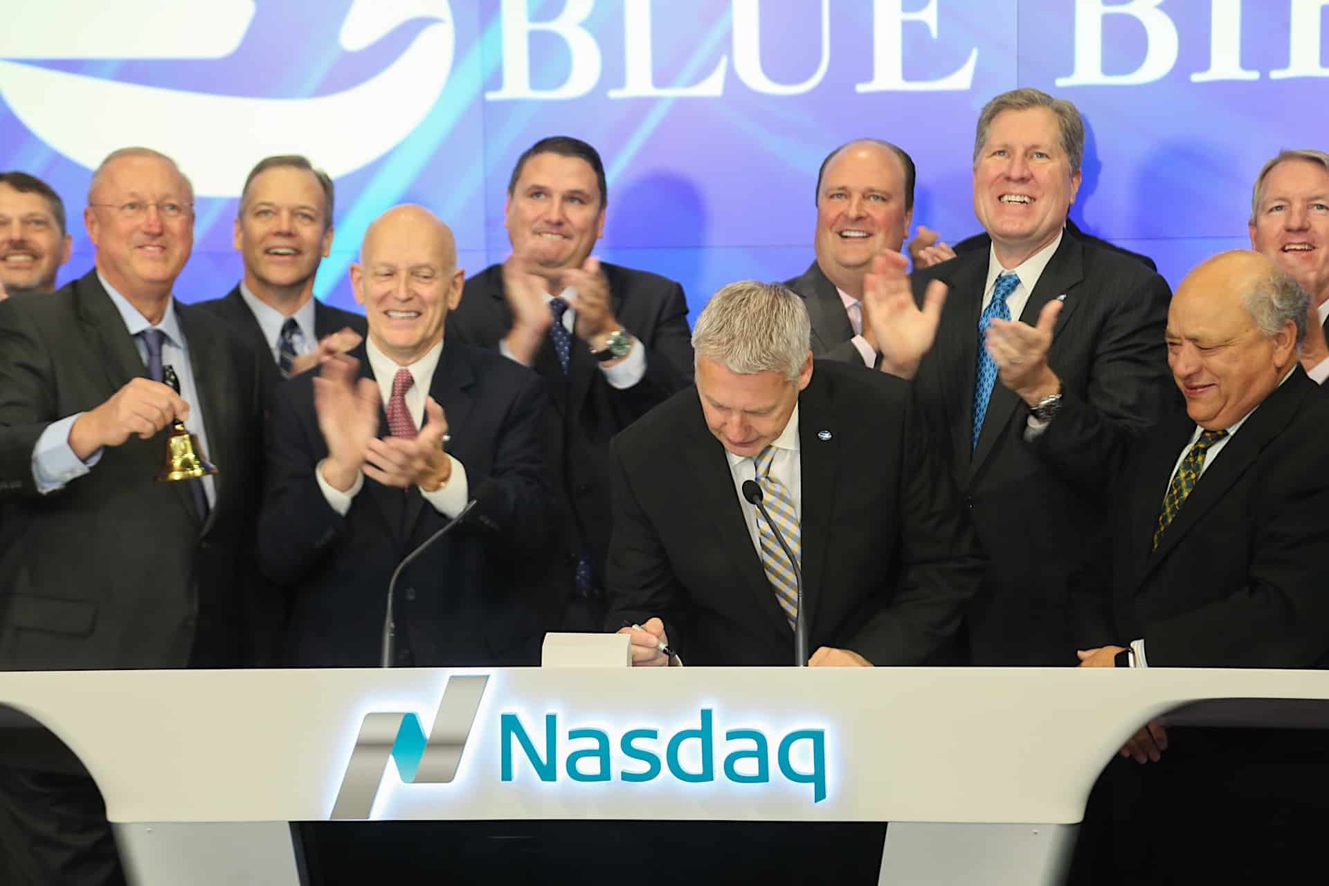 Blue Bird Corporation marked its 130th day as a publicly traded company and the start of the new school year by ringing the NASDAQ opening bell on Wednesday.