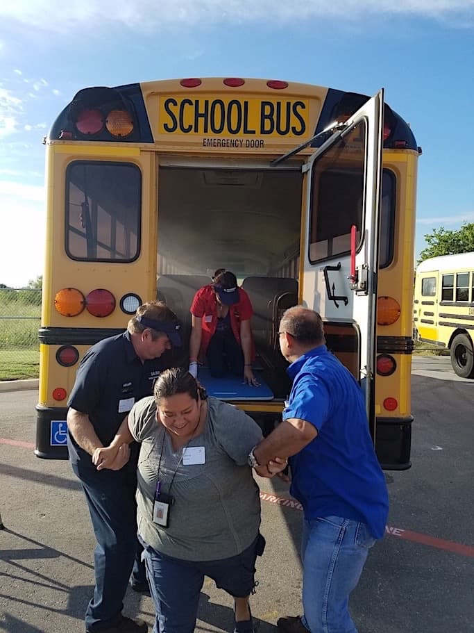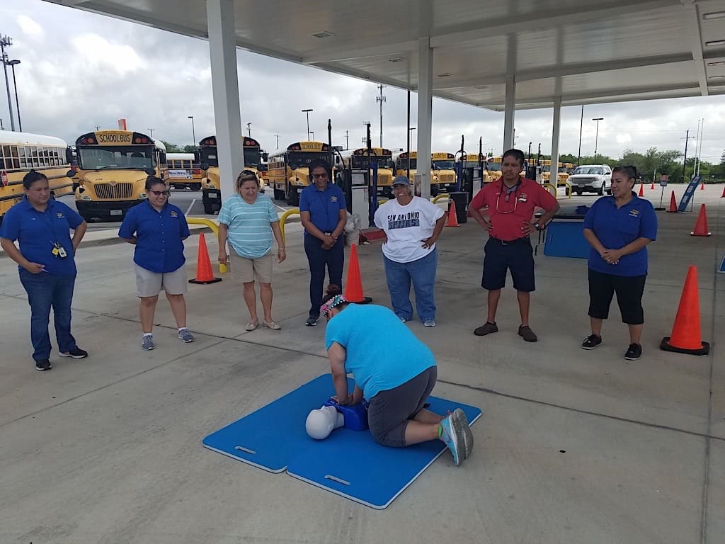 Graf estimated 350 drivers, aides and technicians attended the training, which was put together by 14 driver/trainers with much “teamwork, care and attention to detail.” SAISD partnered with the Crisis Prevention Institute, American Red Cross, Operation Lifesaver and San Antonio Fire Department, all of whom were in attendance to guide exercises.