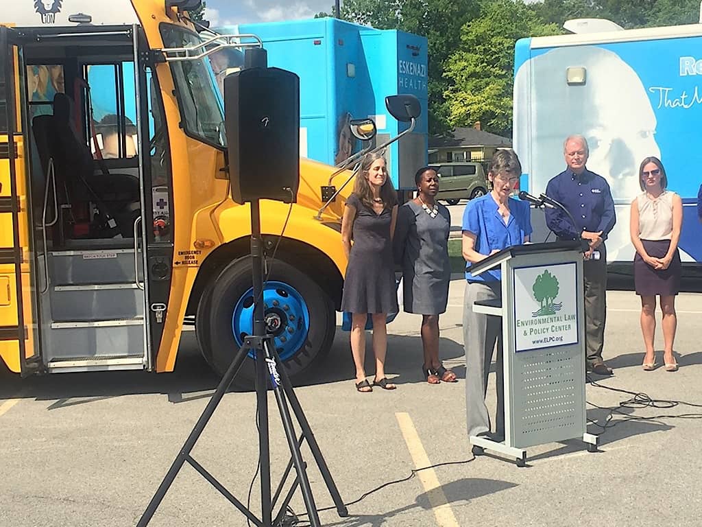 “We got a lot of positive reaction from people upon seeing, hearing and not having to smell them,” said attorney Susan Mudd, senior policy advocate at the Environmental Law & Policy Center, which co-organized the school bus tours. “As with other vehicles, when California leads the way, the rest of the nation is often slower but catches up. The Volkswagen money in many states could help to get things kick-started.”
