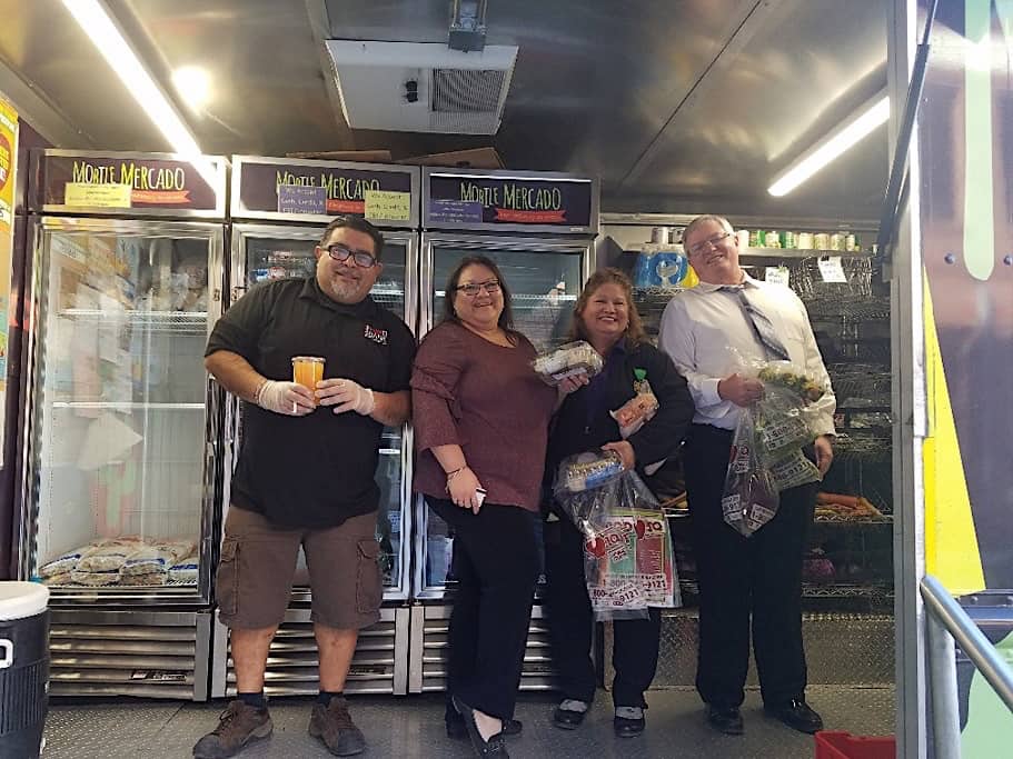 School bus drivers, assistants, vehicle maintenance employees and office staff browsed the San Antonio Foodbank’s “Mobile Mercado,” one part grocery story and the other part demonstration kitchen. Nathan Graf, the district’s executive director of transportation, said professional chefs and nutritionists showed employees how to make tasty and healthy meals with fresh ingredients that are found on the truck, which included locally grown fruits and vegetables.