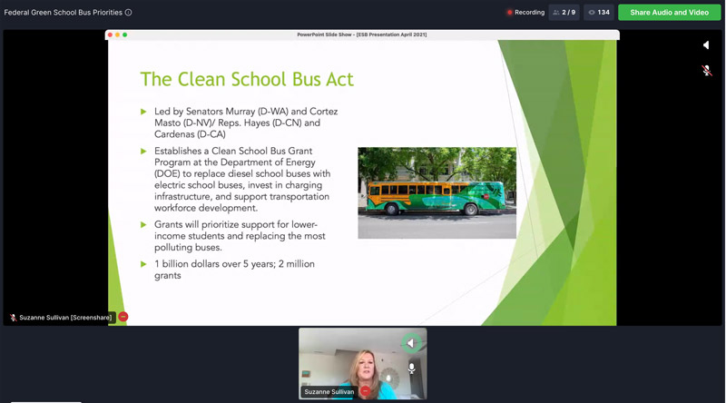 Sullivan shared that President Biden’s infrastructure plan being debated in Congress includes the $20 billion Clean Buses for Kids Program to electrify at least 20 percent of the national fleet, or about 100,000 school buses. She added the infrastructure package will likely be anchored by the surface transportation reauthorization bill to fund federal programs starting Oct. 1.