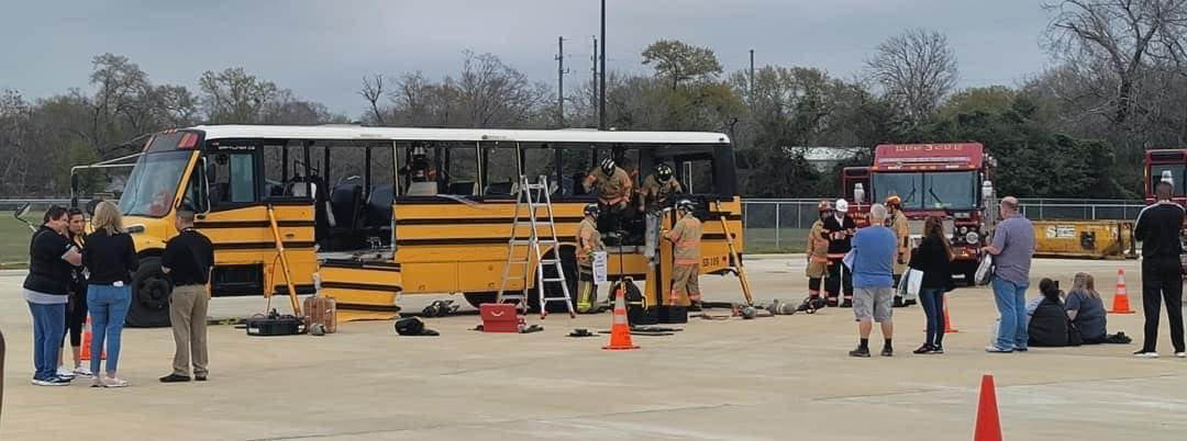Wilson secured a grant from TxDOT via the National Highway Traffic Safety Administration. She explained that the new grant allows for the launch of statewide training, which includes simulated emergency demonstrations conducted with student transporters, firefighters and emergency services.
