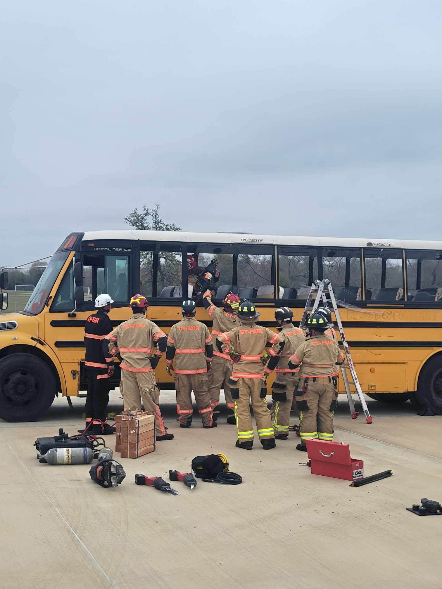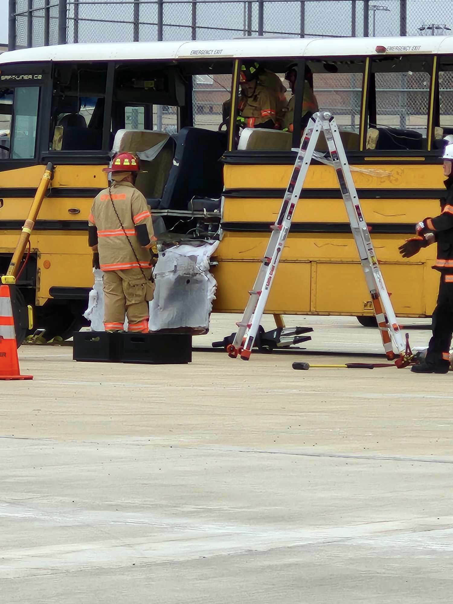 Wilson told STN that the multi-agency training gathered first responders and educators with the help of First Student, which donated a bus so that the firefighters could act out real-life scenarios. Part of the reenactment not only included filling the bus with smoke via smoke machines but also taking more extreme measures, such as the rescue team cutting portions of the bus to evacuate dolls that represented children.